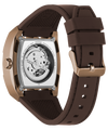 A sleek self‑winding timepiece that blends vintage coffee‑tone steel with a smooth leather strap for effortless style. The 43 mm brushed‑polished case houses a detailed sunray dial and visible skeleton movement, showcasing precision engineering. With 50 meters of water resistance, it’s ready for daily adventures without a battery. This watch delivers refined sophistication while staying sustainably powered.