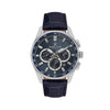 The bold blue dial is complemented by three multifunction sub-dials displaying day, 24-hour time, and dual time, along with a practical date window positioned between 4 and 5 o’clock. The detailed outer chapter ring marked “Multifunction” enhances its sporty edge, while applied hour markers and luminous hands ensure clear readability.