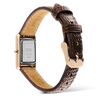 The Bound Mini Lizard brings a refined balance of form and texture. A compact rectangular case in rose gold frames a clean white dial, paired with a dark brown lizard-textured genuine leather strap. Its petite profile sits softly on the wrist and adds quiet confidence to everyday style.We designed this watch for those who appreciate subtle details. The lizard-grain leather offers depth without distraction, while the polished pin buckle secures a comfortable fit. The white dial keeps time clear and uncluttered, and the Japanese quartz movement delivers reliable precision day after day.When you wish to gift something thoughtful, this watch feels right. It suits birthdays and graduations, and it speaks warmly on Valentine’s Day, Mother’s Day, or Christmas. Its timeless palette of rose gold, dark brown leather, and a white dial makes it easy to wear and easy to love.We craft each piece with care. The case uses durable 316L stainless steel finished in rose gold, and the strap is genuine leather with a carefully embossed lizard texture. We refine the edges, test the movement, and ensure every element works in harmony. The result is a rectangular watch that feels considered, enduring, and beautifully made.