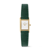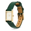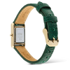 From our Bound collection, the Bound Mini Green Lizard Gold is a compact rectangular watch with a quietly striking presence. A clean white dial rests within a refined gold-tone case, paired with a textured green leather strap for a balanced, modern look. The petite silhouette suits those who prefer subtle elegance and a touch of color. We designed this piece for clarity and comfort. The rectangular form feels timeless, while the lizard-embossed genuine leather adds depth to the green strap. Reliable Japanese quartz movement keeps precise time, and a polished pin buckle ensures an easy, secure fit throughout the day. It makes a thoughtful gift for birthdays, Valentine’s Day, Christmas, graduations, or Mother’s Day. The harmony of gold, green, and white complements many wardrobes, offering an accessible and affordable way to share something personal and refined. Give it to someone who values detail and a graceful everyday companion. We craft the case from 316L stainless steel for strength and enduring shine. The white dial is finished for clarity, and the leather strap is cut and stitched for lasting comfort. Each surface is carefully polished, and every connection is considered, reflecting our quiet commitment to thoughtful craftsmanship.